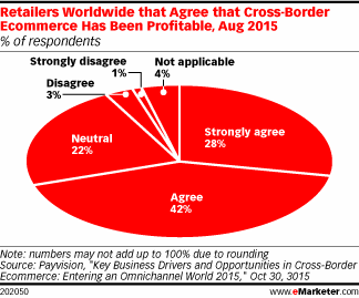 In the US, for example, digital buyers exhibit low levels of cross-border shopping. According to a the Paypal study conducted by Ipsos in October 2015, 22% of digital buyers in the US had made a cross-border purchase in the past 12 months, the lowest level of overseas buying behavior in the Americas. The same Ipsos survey found that 67% of digital buyers in Canada had made a cross-border digital purchase in the past 12 months, one of the highest levels of overseas buying behavior in the Americas.